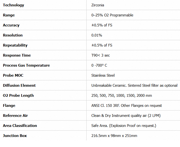 เครื่องวิเคราะห์ออกซิเจนเซอร์โคเนียแบบติดตั้งในระบบ (Insitu) รุ่น BI 2100-S (รองรับอุณหภูมิสูงสุด 700 องศาเซลเซียส)