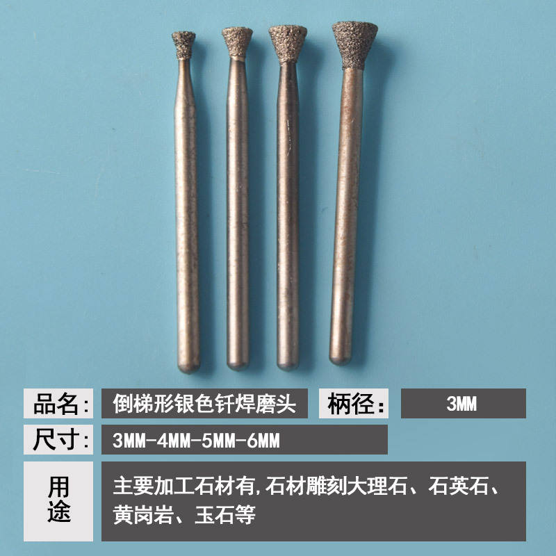 หัวเจียรเงินทรงสี่เหลี่ยมคางหมูกลับด้าน (ขนาด 3 มม., จำนวน 5 ชิ้น)