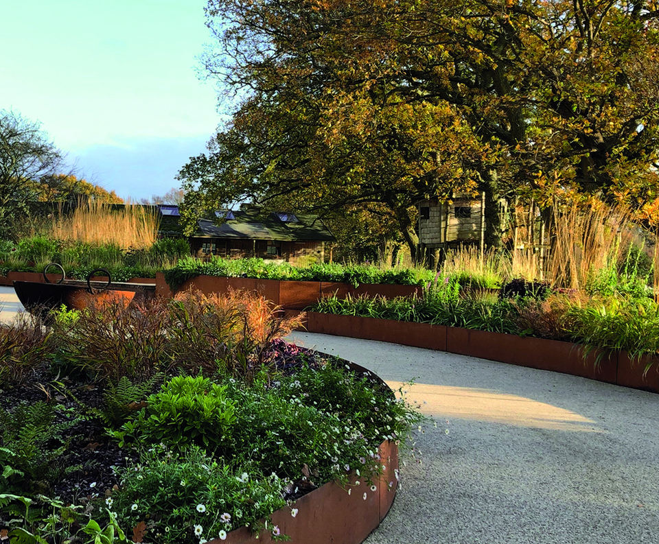 ขอบสวนโลหะทนทานสำหรับงานอุตสาหกรรม ตกแต่งสวนด้วยเหล็กคอร์เทนสไตล์อาร์ตเดโค ปรับแต่งขนาดได้ ใช้งานกลางแจ้ง กันน้ำ
