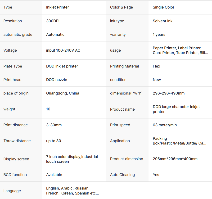 วัสดุการพิมพ์:เฟล็กซ์, กล่องบรรจุ, พลาสติก, โลหะ, ขวด, สามารถ, ท่อ, ท่อ, หิน, วัสดุก่อสร้าง, ถุงปูนซีเมนต์, ถุงผ้าทอ, ผลิตภัณฑ์คอนกรีต