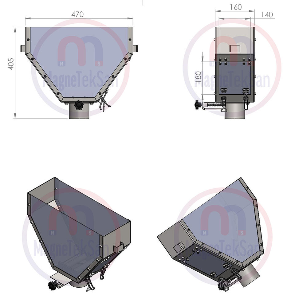 เครื่องแยกแม่เหล็กอุตสาหกรรมสำหรับกาแฟและผงโกโก้ ทำจากสแตนเลส 304 ความเข้มข้นสูง แบบบังเกอร์ แม่เหล็กนีโอไดเมียมคอมโพสิต N35