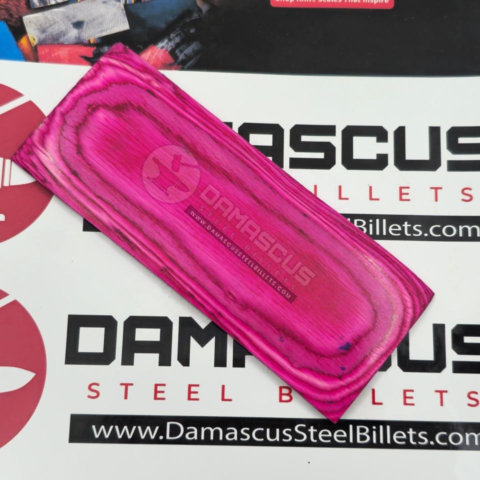 ด้ามมีดทำมือสีชมพูสดใสแบบ ODM สำหรับงานอุตสาหกรรม วัสดุไม้เคลือบเรซิ่นสีชมพูฟูเชีย สำหรับทำมีดตามสั่ง