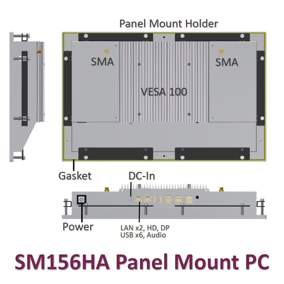 พอร์ต I/O:HD, DP, X6 USB, X1เสียง, ตัวเลือก DC-in: COM, GPIO, พอร์ต CAN