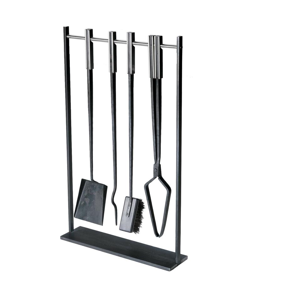 Industrial Quality Fireplace Tools Sets Black Handle Wrought Iron Large Fire Tool Set and Holder Outdoor Fire Pit Stand