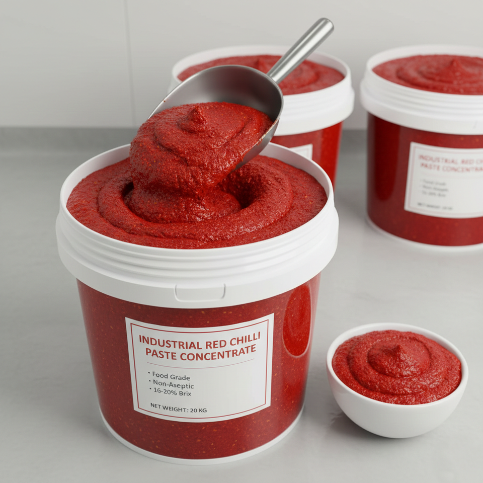 พริกแดงอุตสาหกรรมบดเข้มข้น | วัตถุดิบเกรดอาหาร | ไม่ผ่านการฆ่าเชื้อ | 16-20% บริกซ์ | ได้รับการรับรองจาก FSSAI | บรรจุภัณฑ์แบบถัง/ซอง 20 กก. | OEM