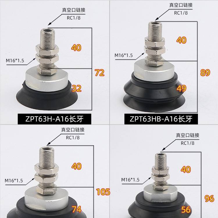 หุ่นยนต์อุตสาหกรรมดูดฝุ่นและถ้วยดูดแบบนิวเมติก ZPT40/50/63/80/100/125HN/S-A16 ถ้วยดูดแบบนิวเมติกพร้อมโช้คอัพ