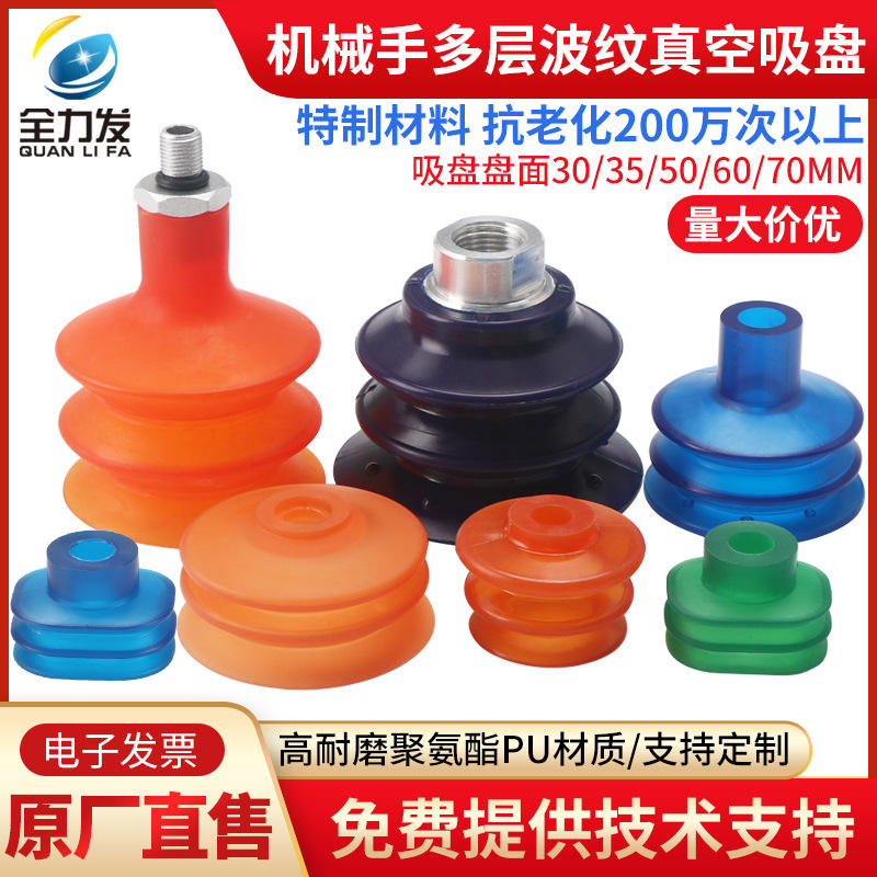 จุกดูดสุญญากาศสำหรับหุ่นยนต์อุตสาหกรรม แบบชั้นเดียว/สองชั้น/สามชั้น/หลายชั้น ทนทาน แข็งแรง ผลิตจากโพลียูรีเทน (PU) อะไหล่ระบบลม ใหม่