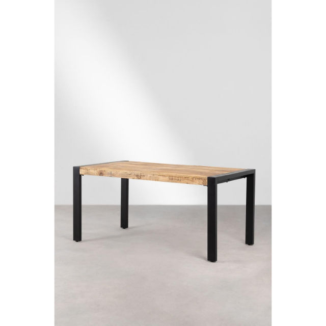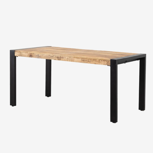 โต๊ะอาหารไม้มะม่วงสไตล์อินดัสเทรียลรัสติก ขาเหล็ก ผิวสัมผัสธรรมชาติ เป็นมิตรกับสิ่งแวดล้อม พับได้ เหมาะสำหรับร้านอาหารและโรงแรม