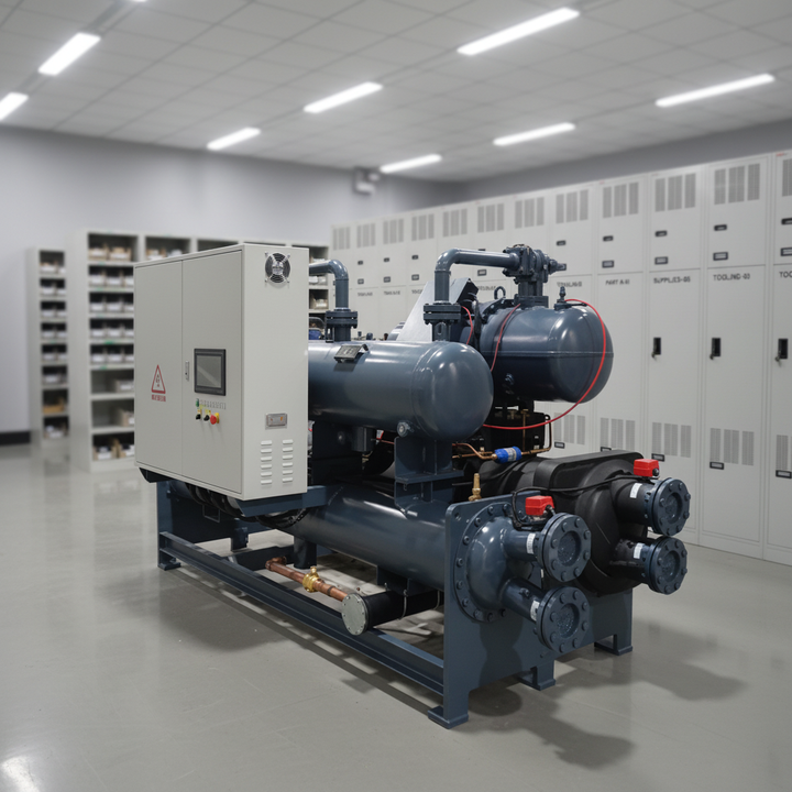 เครื่องทำความเย็นแบบสกรูอุตสาหกรรมชนิดระบายความร้อนด้วยน้ำ (แบบฟลัดดิ้ง) คอมเพรสเซอร์ประสิทธิภาพสูง ประหยัดพลังงาน ป้องกันการเกิดออกซิเดชัน ปั๊มลิเธียม
