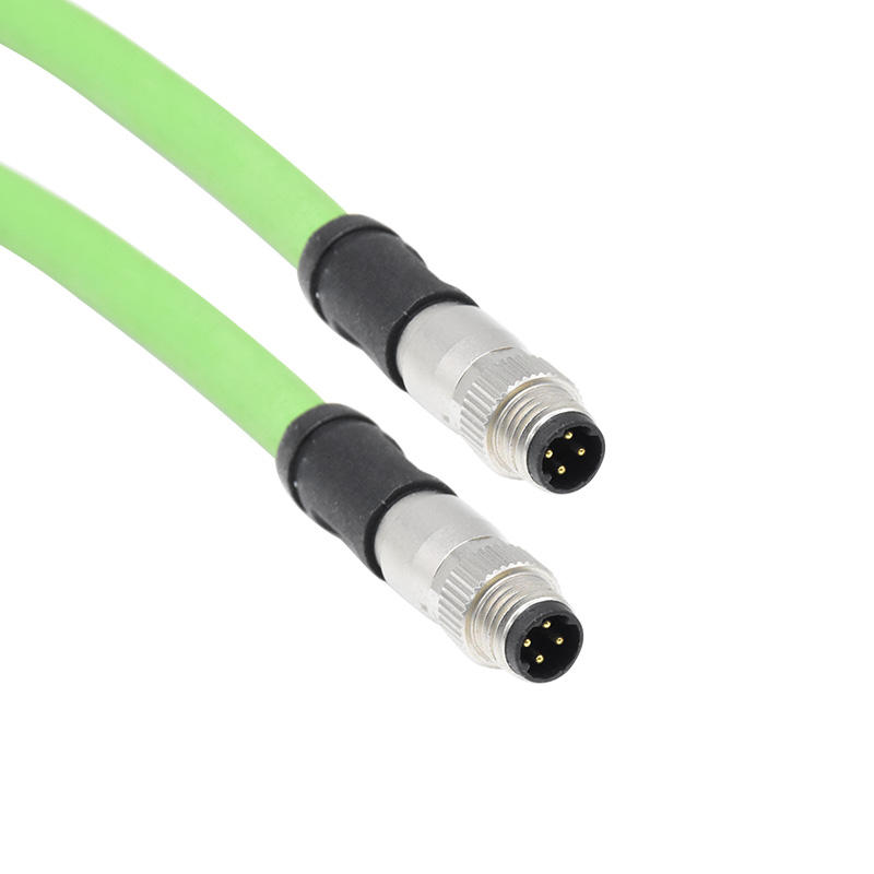 M8 D Code 4 Pin Male Female Double Ended Plug Moldable Cable