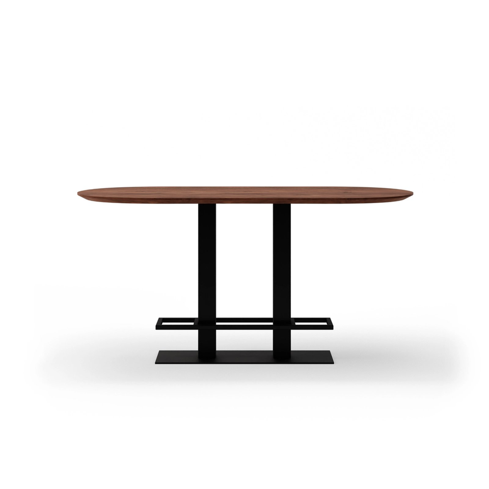 โต๊ะร้านอาหารทรงวงรี 4 ที่นั่ง รุ่นอินดัสเทรียล หน้าโต๊ะไม้เนื้อแข็ง ฐานโลหะทันสมัย เป็นมิตรกับสิ่งแวดล้อม เหมาะสำหรับใช้งานกลางแจ้งในโรงเรียน