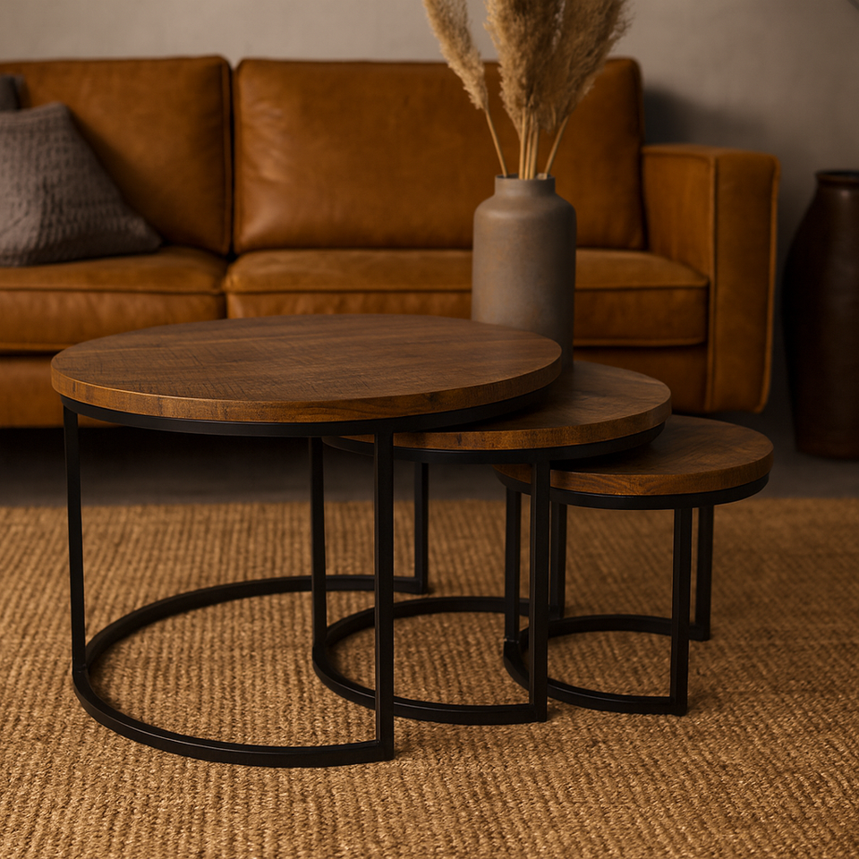 ชุดอุตสาหกรรม3รอบโต๊ะกาแฟไม้เนื้อแข็งเฟอร์นิเจอร์ห้องนั่งเล่น