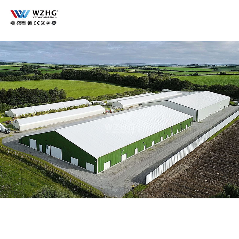 อาคารฟาร์มโครงสร้างเหล็กพื้นฐานพร้อมอายุการใช้งาน50ปีได้รับการรับรองมาตรฐาน ISO สำหรับใช้ในอุตสาหกรรมสัตว์ปีก