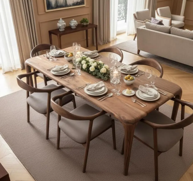 โต๊ะรับประทานอาหารไม้เนื้อแข็งอะคาเซียอุตสาหกรรม รักษ์โลก ทนทาน ลายไม้ธรรมชาติ เหมาะสำหรับพื้นที่กว้างขวาง ใช้ในบ้าน ห้องครัว ร้านอาหาร