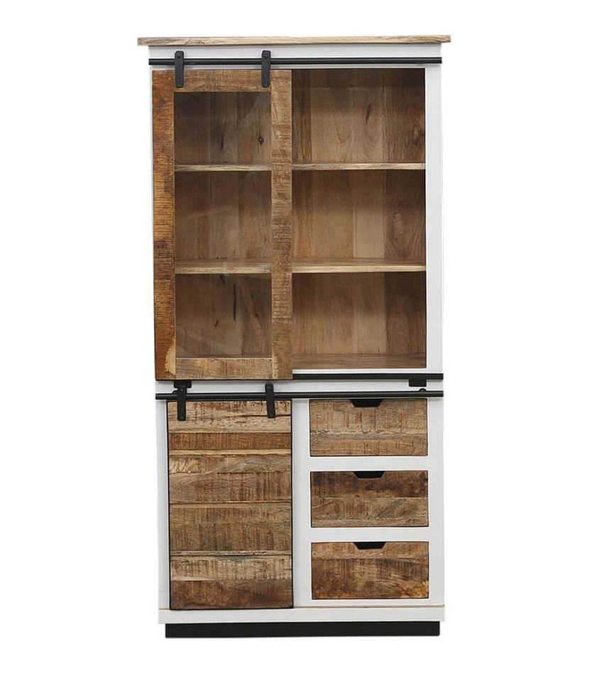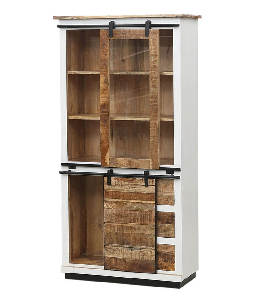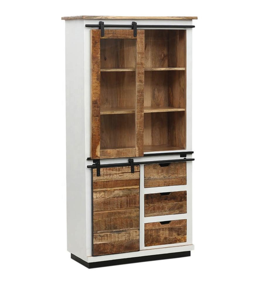 ตู้โชว์ไม้แข็งอุตสาหกรรมเฟอร์นิเจอร์ห้องนั่งเล่นบ้านบุฟเฟ่ต์ขาว & ธรรมชาติใหม่ตู้บานเลื่อน
