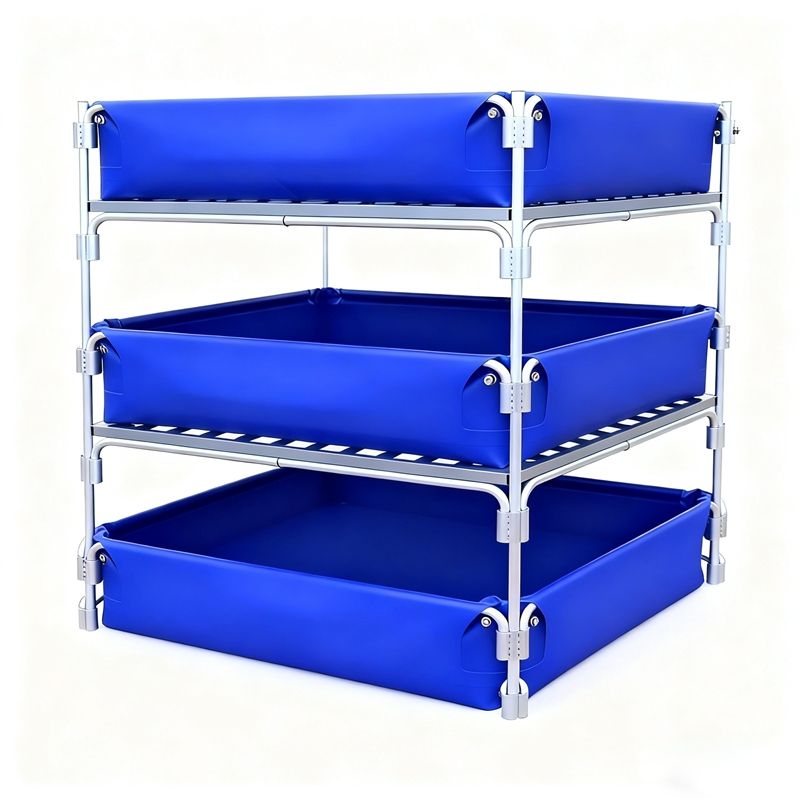 ถังเพาะเลี้ยงสัตว์น้ำแบบสี่เหลี่ยมอุตสาหกรรมพร้อมผ้าใบพีวีซีเสริมระบบเพาะพันธุ์ปลาเชิงพาณิชย์
