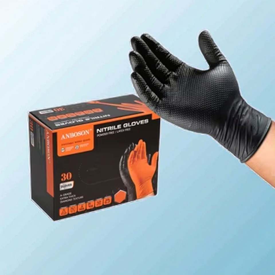 ถุงมือไนไตรล์แบบสองสี8Mil ทนทานสำหรับงานอุตสาหกรรมปราศจากน้ำยางข้นปราศจากเพชร