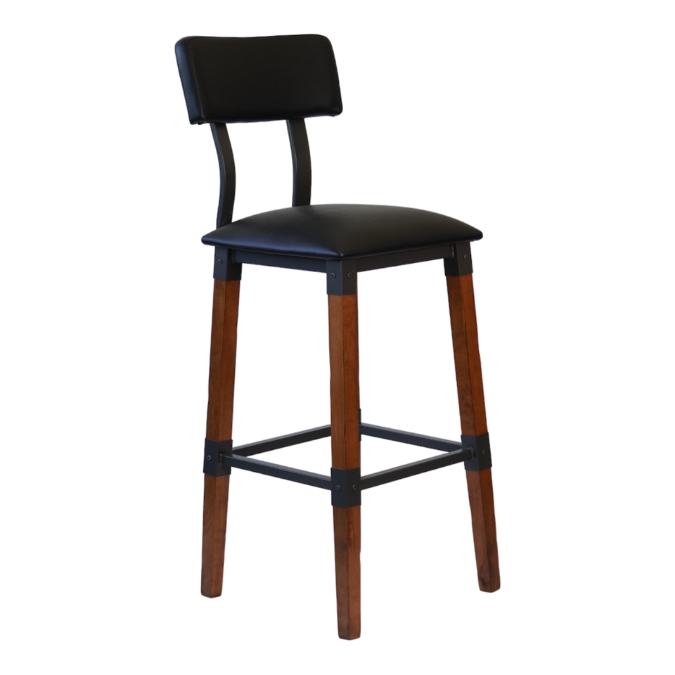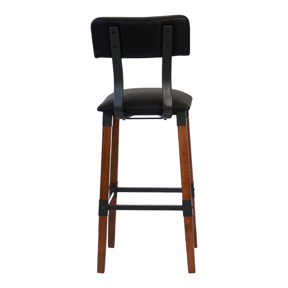เก้าอี้ร้านอาหารสไตล์อินดัสเทรียลพนักพิงสูง ทำจากไม้และโลหะ หุ้มเบาะหนัง PU สีดำ โครงไม้บีช สำหรับเฟอร์นิเจอร์บาร์