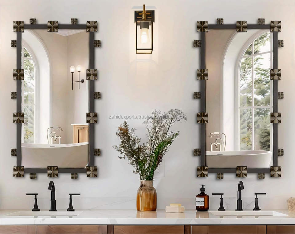 กระจกติดผนังสไตล์อินดัสเทรียลพร้อมกรอบเหล็ก สำหรับห้องนั่งเล่นสไตล์ลอฟท์ ห้องครัว หรือทางเดินในเมือง จากซัพพลายเออร์อินเดีย