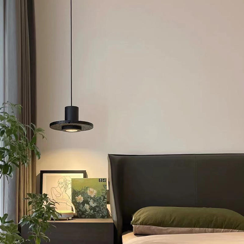 โคมไฟระย้าหัวเดียวสไตล์อินดัสเทรียล ดีไซน์สร้างสรรค์ เรียบง่าย สไตล์มินิมอล หินสีดำ สำหรับร้านกาแฟ ร้านอาหาร โคมไฟแบบยาว