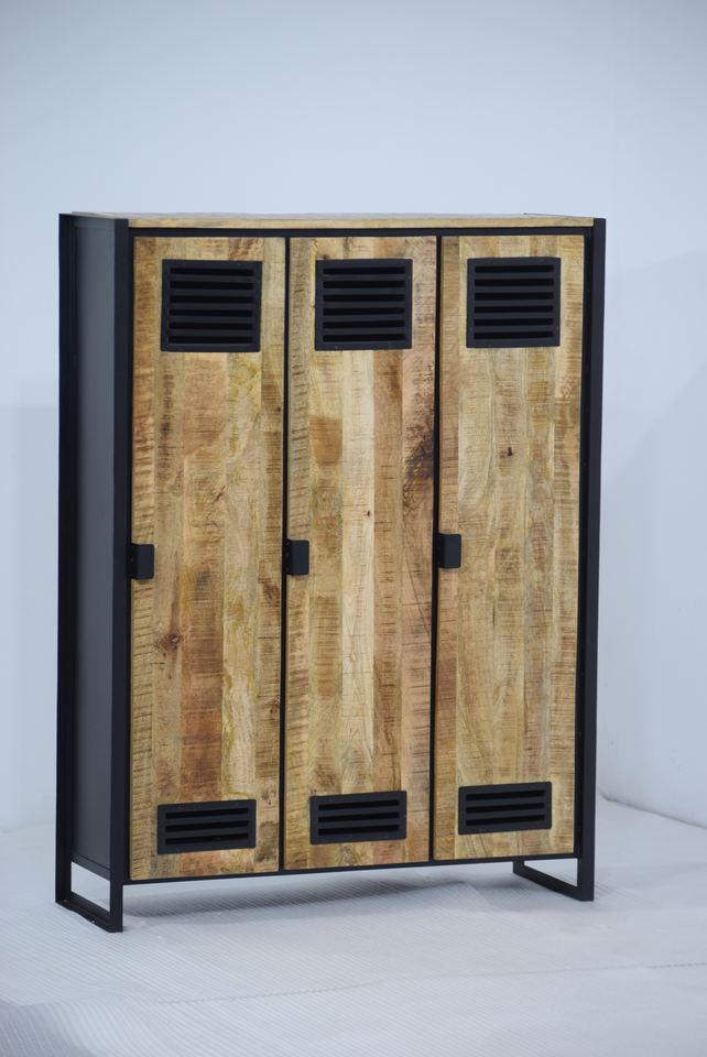 ตู้ไม้เนื้อแข็งสไตล์อุตสาหกรรมล็อกเกอร์ประตู3ชั้นพร้อมฐานเหล็กสำหรับธนาคารบ้านโรงแรมหรือห้องนั่งเล่น