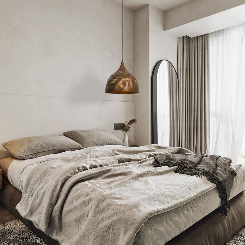 โคมไฟเพดาน LED สไตล์อินดัสเทรียล วาบิซาบิ โมเดิร์น เรียบง่าย วัสดุทองแดง ปรับความสูงได้ ขนาดกลาง รับประกัน 3 ปี