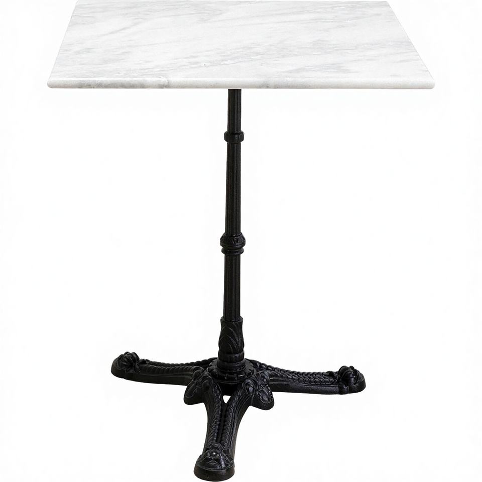 โต๊ะหินอ่อนสีขาวทรงสี่เหลี่ยมสไตล์อินดัสเทรียล ฐานโลหะสีดำ โต๊ะรับประทานอาหารสำหรับสวนและกลางแจ้ง
