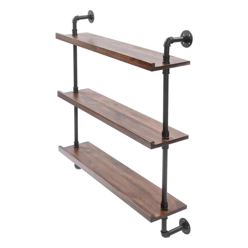ชั้นวางของติดผนังแบบสามชั้น วัสดุเหล็ก ท่อเหล็ก ชั้นวางลอยแบบคลาสสิก ชั้นวางบาร์ลอย ชั้นวางไวน์ ความจุ 3 ลิตร