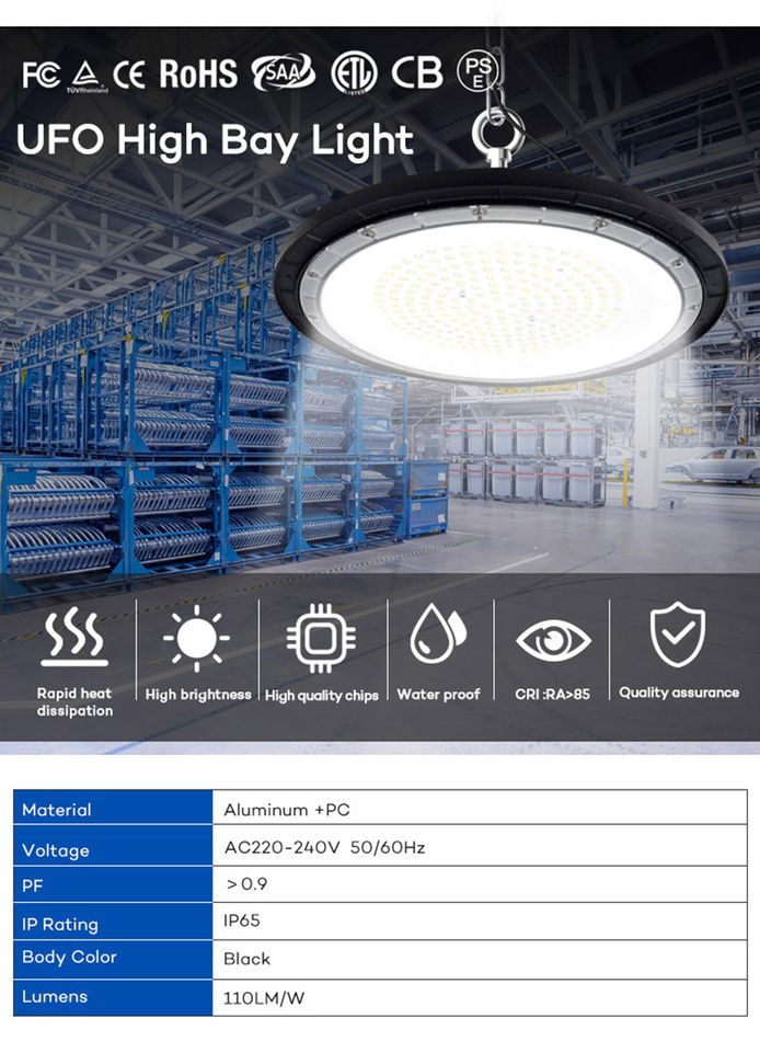 หลอดไฟทรงสูงแบบยูเอฟโอ LED สำหรับอุตสาหกรรมโคมไฟอลูมิเนียมติดผนัง100W 150W 200W IP65โรงจอดรถ