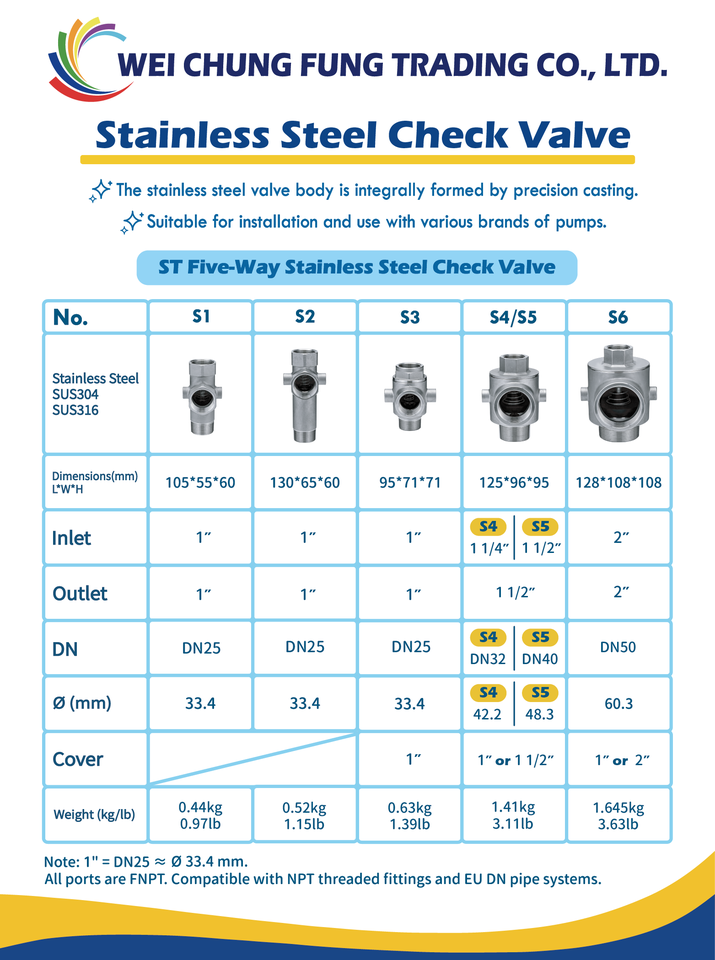 วาล์วตรวจสอบน้ำสเตนเลส SUS304 สำหรับงานอุตสาหกรรมใหม่ ระบบไฮดรอลิก ขนาด 1-1/4 นิ้ว สำหรับท่อปั๊ม ผลิตในไต้หวัน PN16