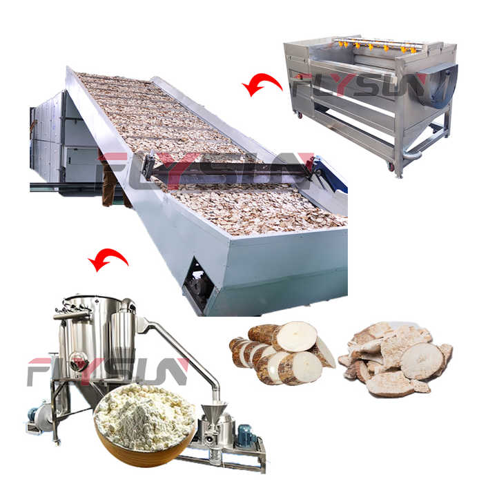 กระบวนการ dryig:การซัก + การหั่น + การอบแห้ง + การลดความชื้น + การบด + การบรรจุ