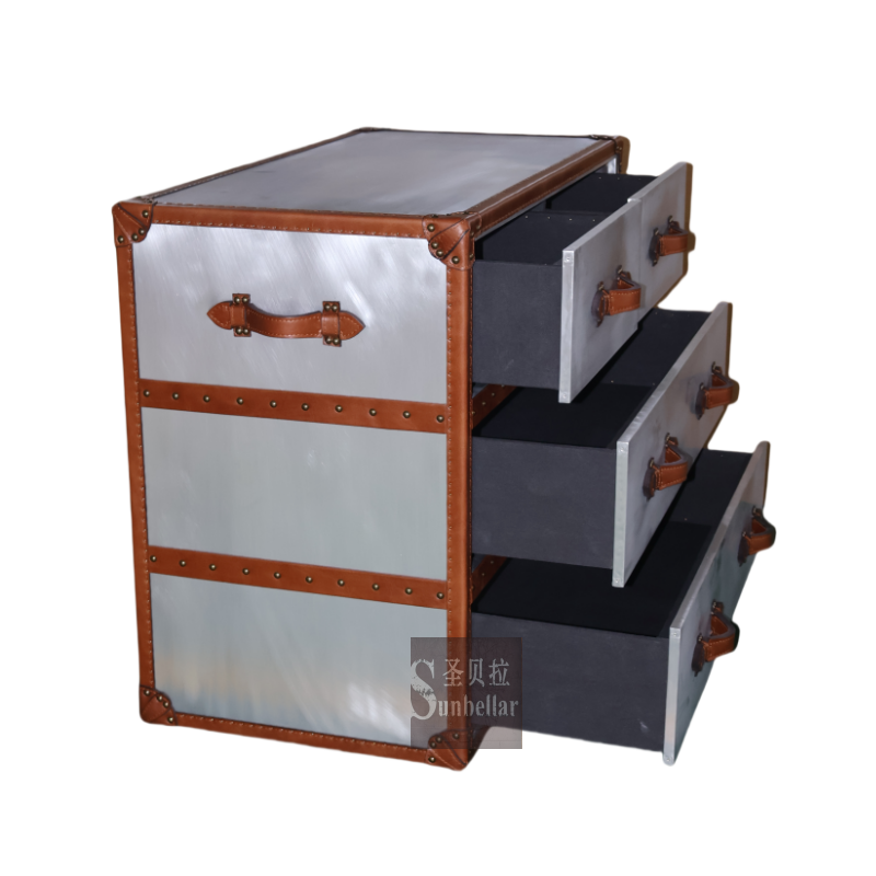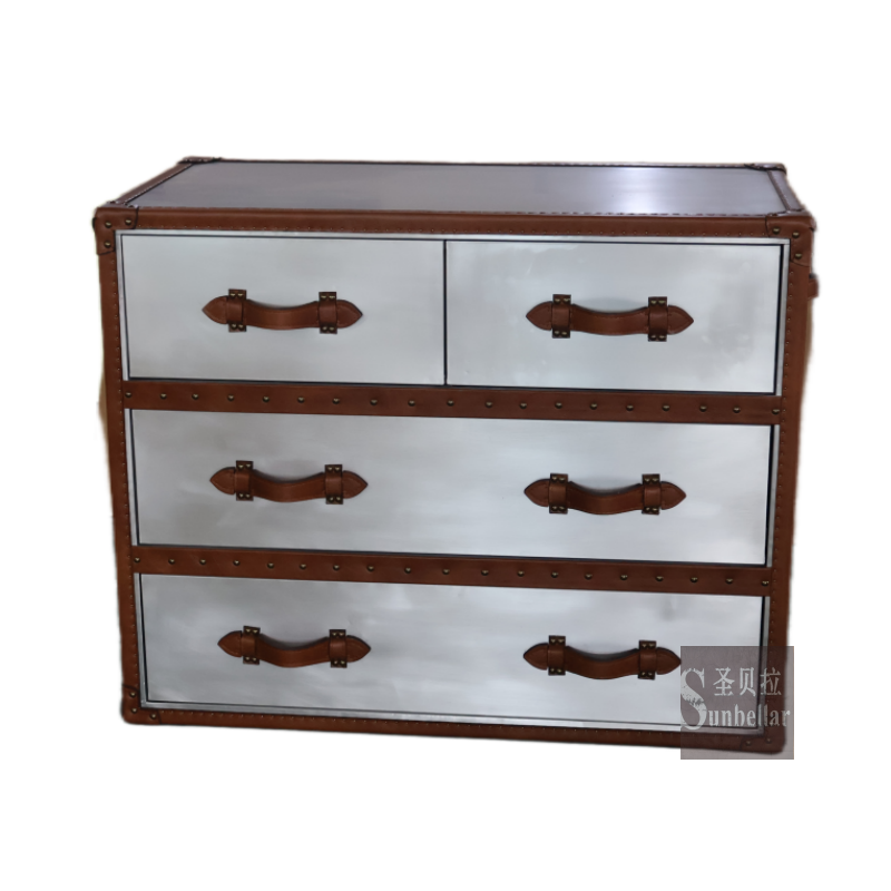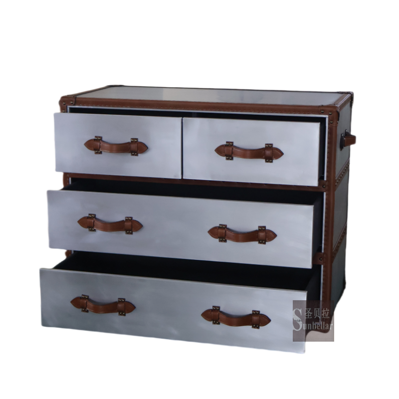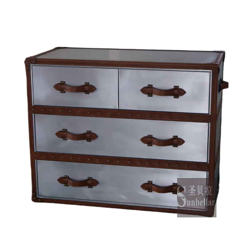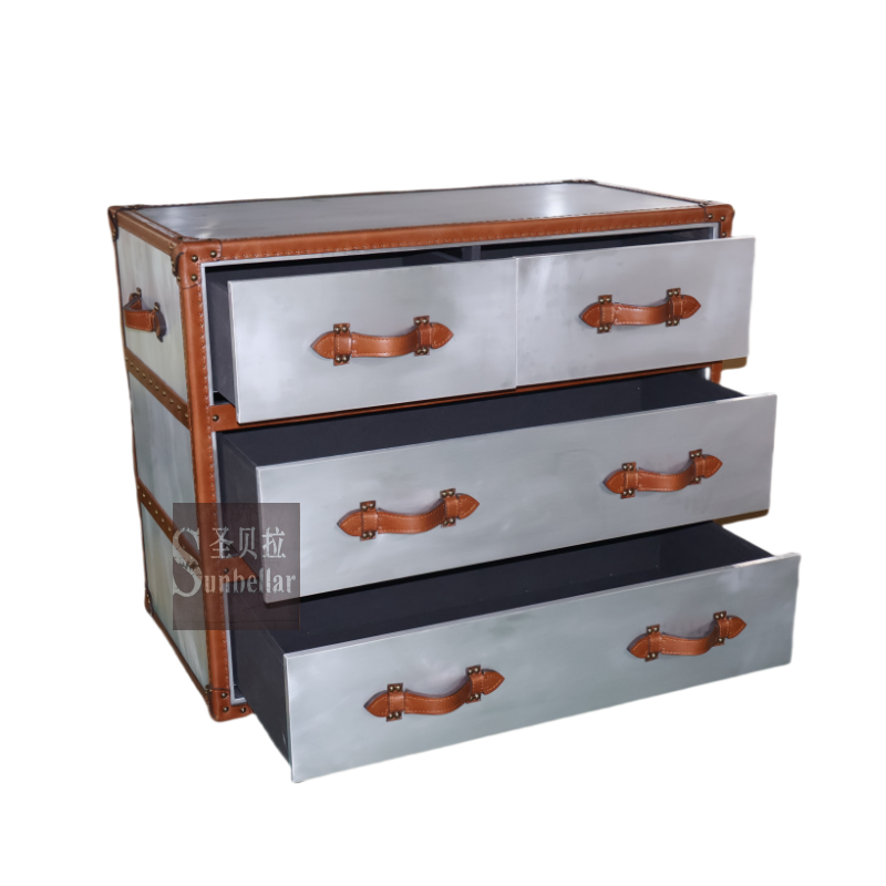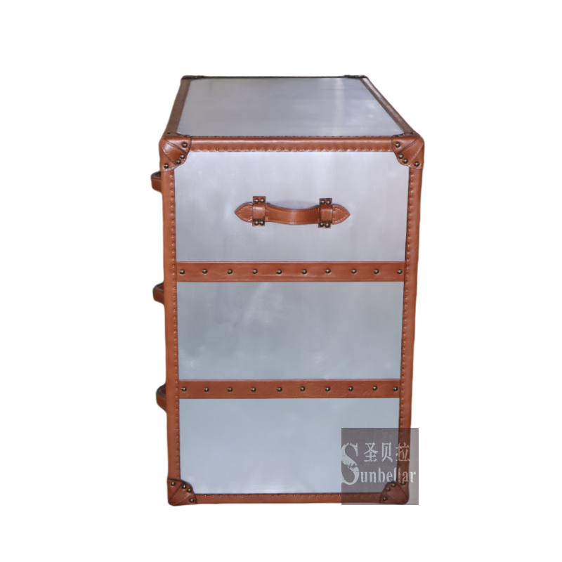 Industrial Vintage American Chest of Drawers Cabinet Accent Leather Metal Hardware Aluminium Antique Multi Side Cabinet Home