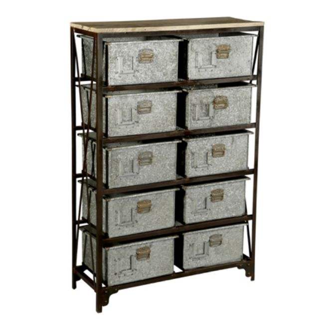 ปืนเหล็กอุตสาหกรรมและวินเทจโลหะ & ไม้มะม่วงเก่าโบราณที่เก็บของในบ้านเฟอร์นิเจอร์ลิ้นชัก10ลิ้นชักตู้ห้องนั่งเล่น