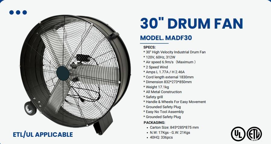 พัดลมติดผนังอุตสาหกรรมแบบแกนหมุน ความเร็วสูง สำหรับระบายอากาศในโรงงาน/คลังสินค้า รับผลิตแบบ OEM/ODM รุ่น GAPIDF000