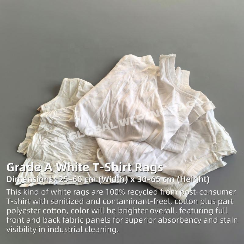 ผ้าเช็ดทำความสะอาดอุตสาหกรรมสีขาว ผ้าฝ้าย 100% ผ้าเช็ดเสื้อยืด 5กก. 10กก. 25กก. สีขาวรีไซเคิล