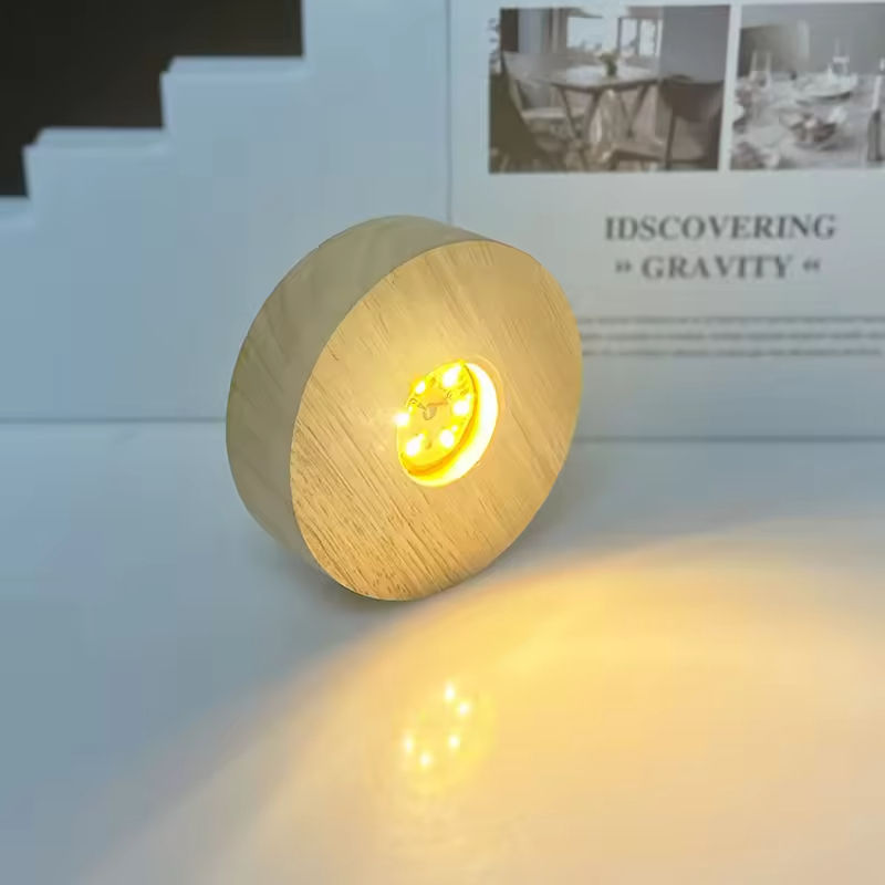 ฐานโคมไฟไม้สไตล์อินดัสเทรียลพร้อมโคมคริสตัล ที่วางเครื่องกระจายกลิ่นหอมแบบ LED ใช้พลังงานจากแบตเตอรี่ AAA 3 ก้อน แสงสีขาวอบอุ่น ควบคุมด้วยสวิตช์