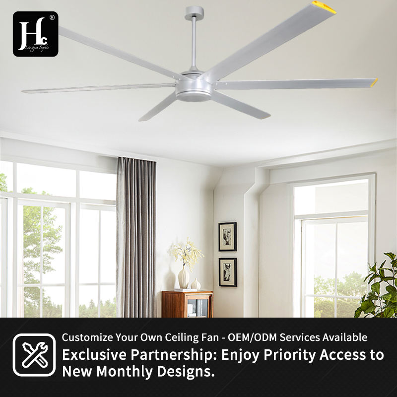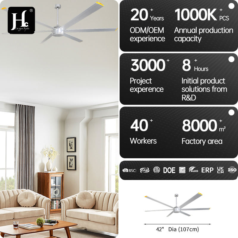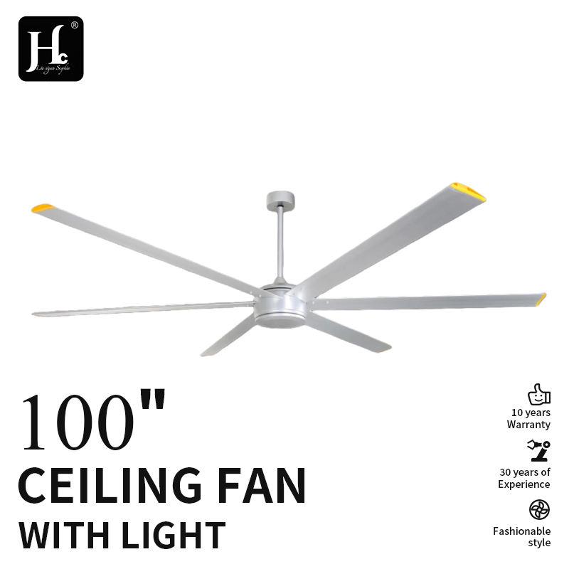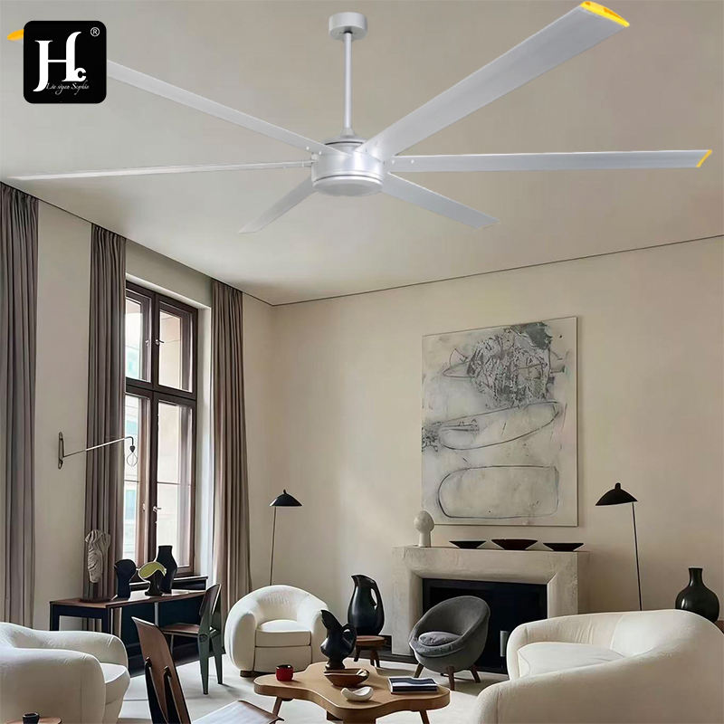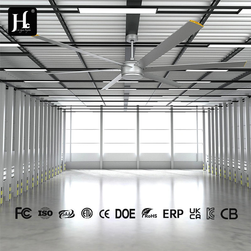 พัดลมเพดานอุตสาหกรรมพร้อมไฟ ขนาด 72 นิ้ว ใบพัดอลูมิเนียม มอเตอร์ทรงพลัง BLDC สำหรับบ้านไร่ โรงงาน