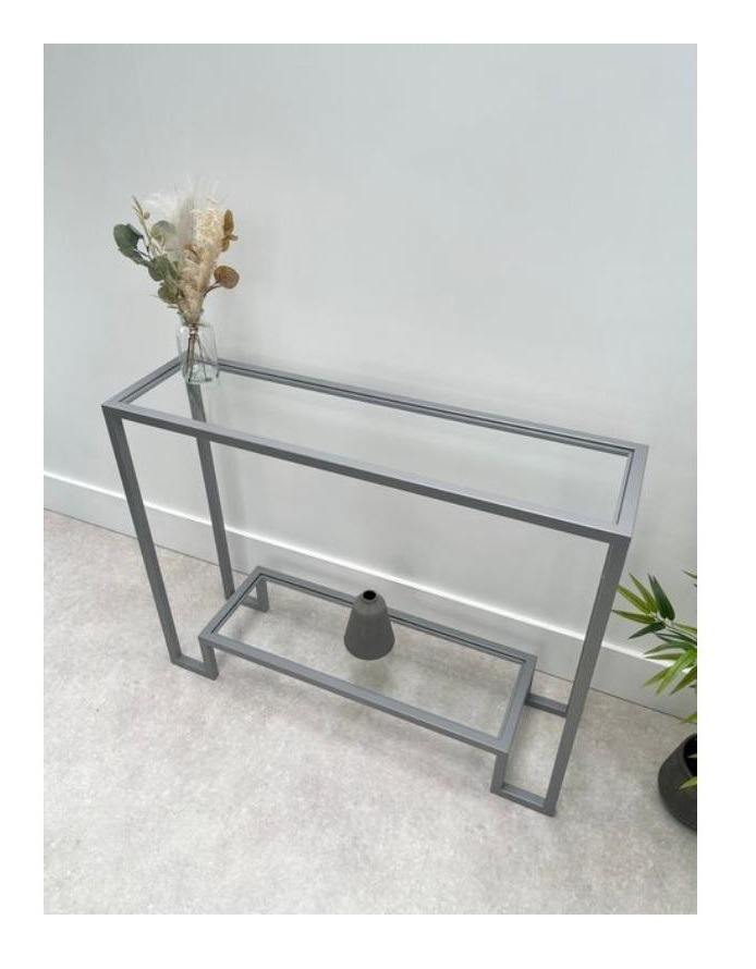 โต๊ะคอนโซลโลหะสไตล์อุตสาหกรรมพร้อมกระจกด้านบนรวมวัตถุดิบที่สวยงามเหมาะสำหรับการตกแต่งในเมือง