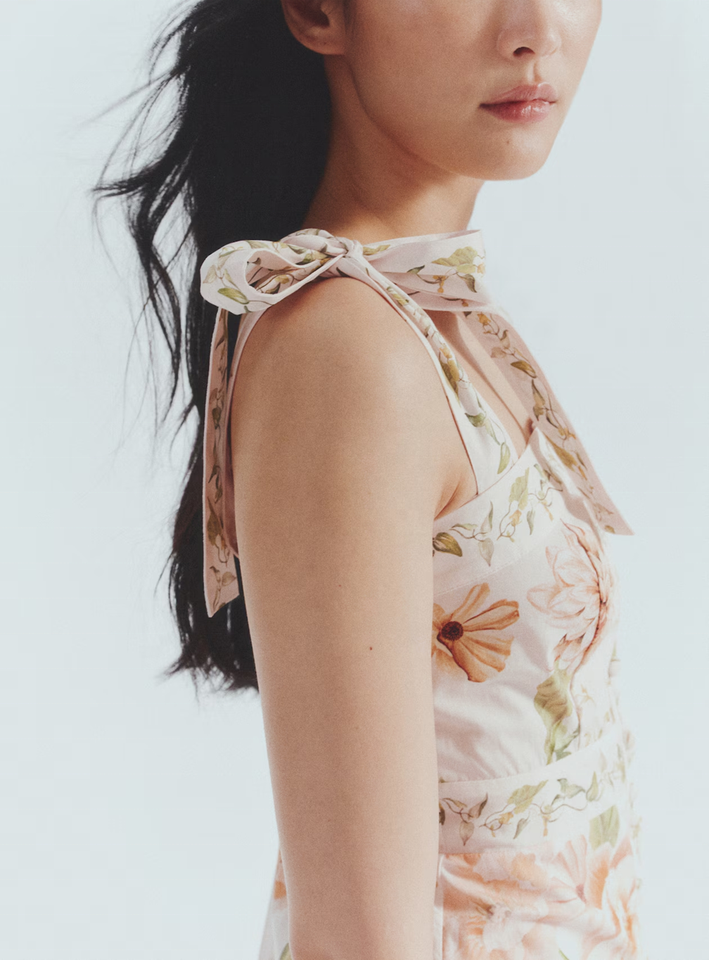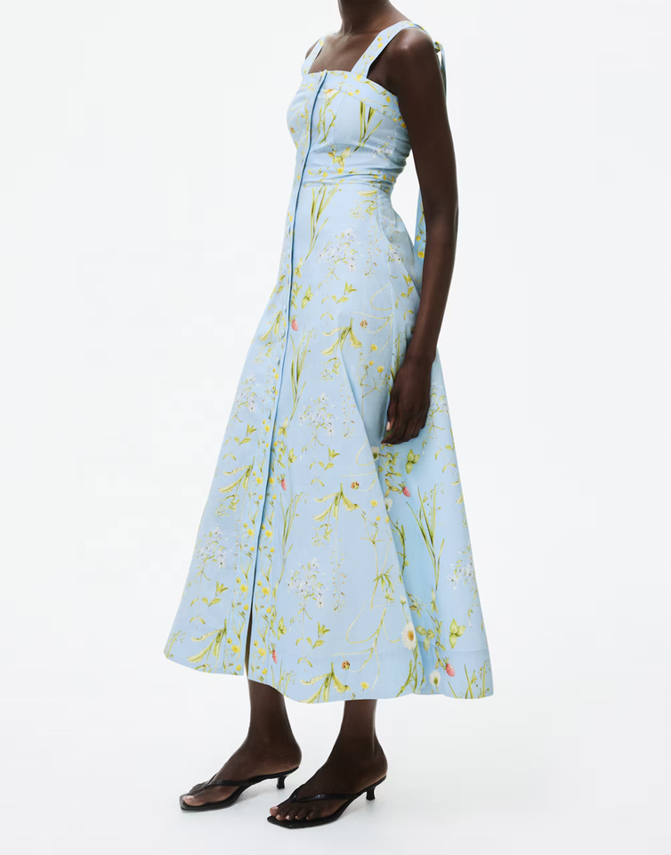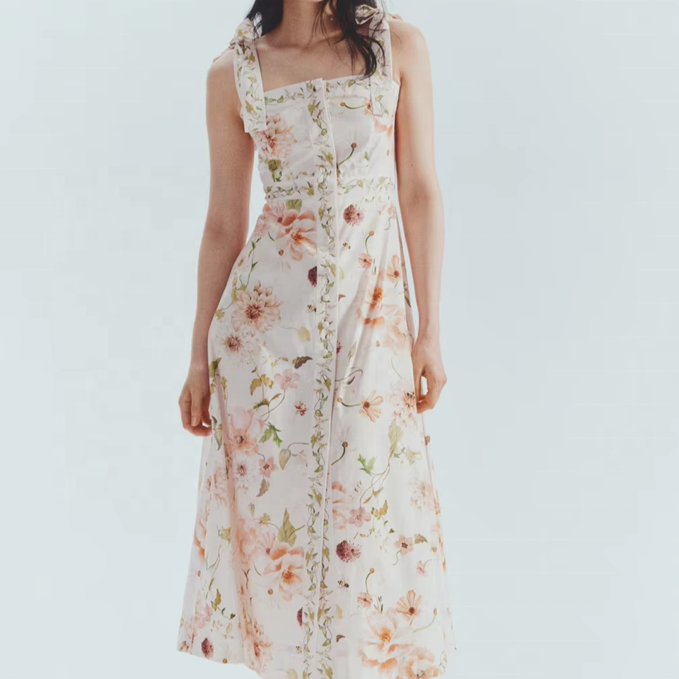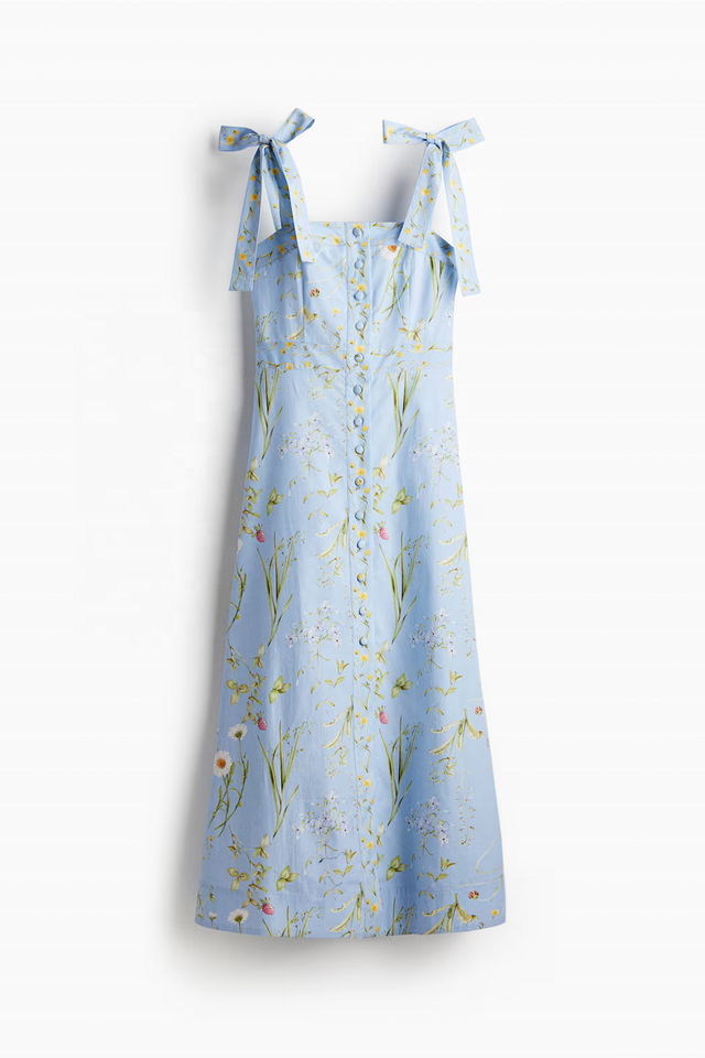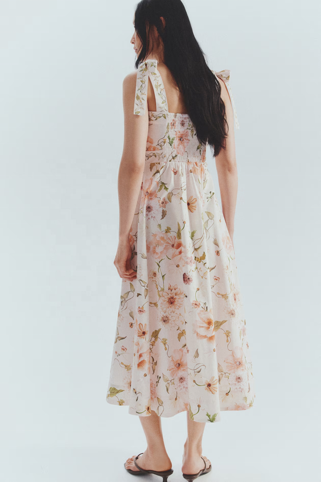 Product Name:Women's simple and printed smoked bodice tie strap Dress