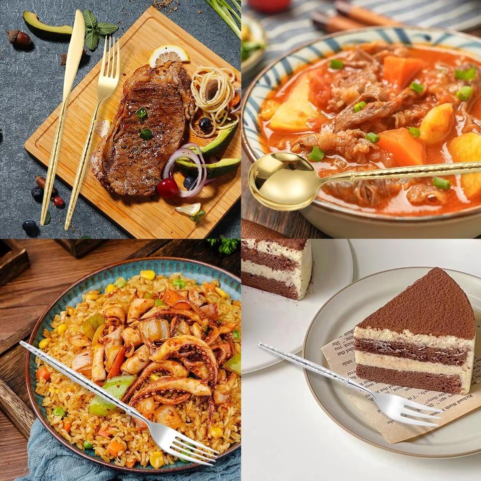 ชุดช้อนส้อมสแตนเลสสำหรับอุตสาหกรรมชุดเครื่องใช้บนโต๊ะอาหารที่สวยงามสำหรับนักออกแบบที่ทำด้วยค้อน