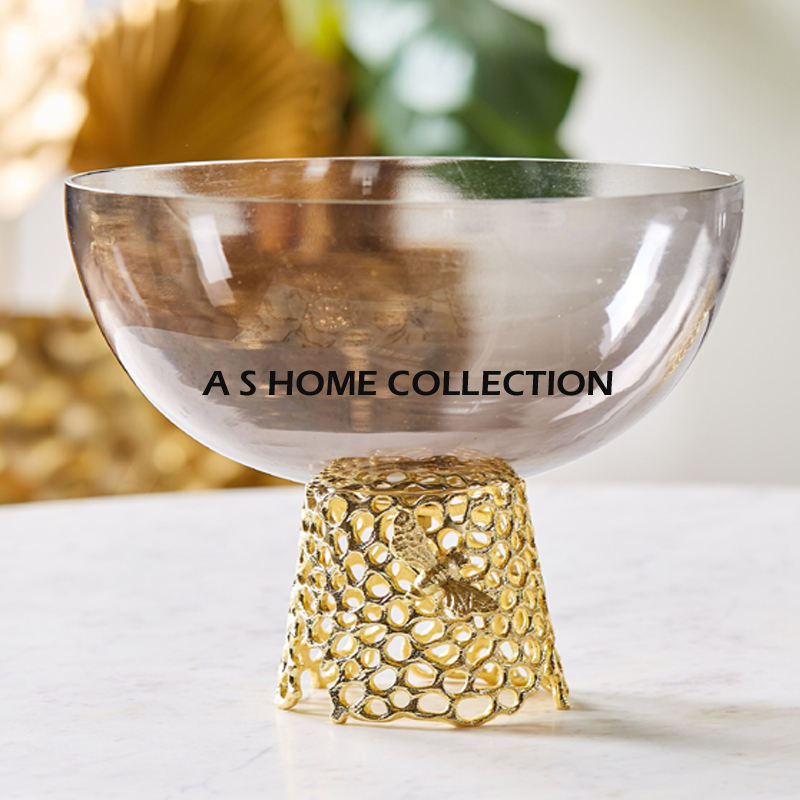ชามแก้วสไตล์อุตสาหกรรมที่มีดีไซน์แบบเจาะรูอุปกรณ์รับประทานอาหารฐานทองเหลืองภาชนะบรรจุอาหาร