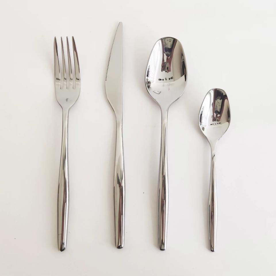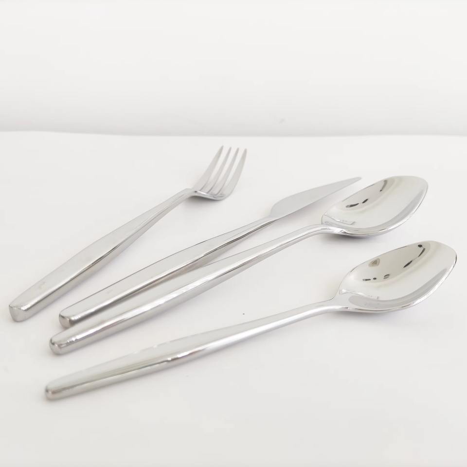 ชุดช้อนส้อมสแตนเลสสีเมทัลลิก ใช้งานได้ยาวนาน เป็นมิตรต่อสิ่งแวดล้อม เหมาะสำหรับงานเลี้ยงและการเสิร์ฟอาหารสมัยใหม่