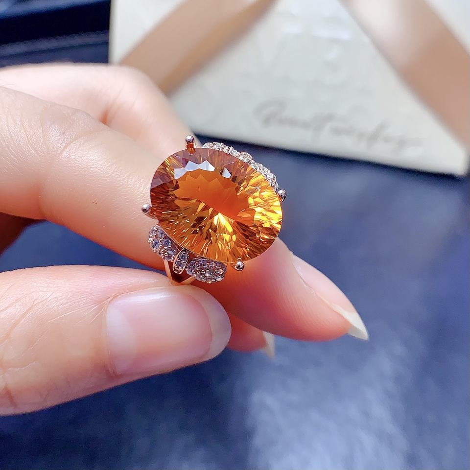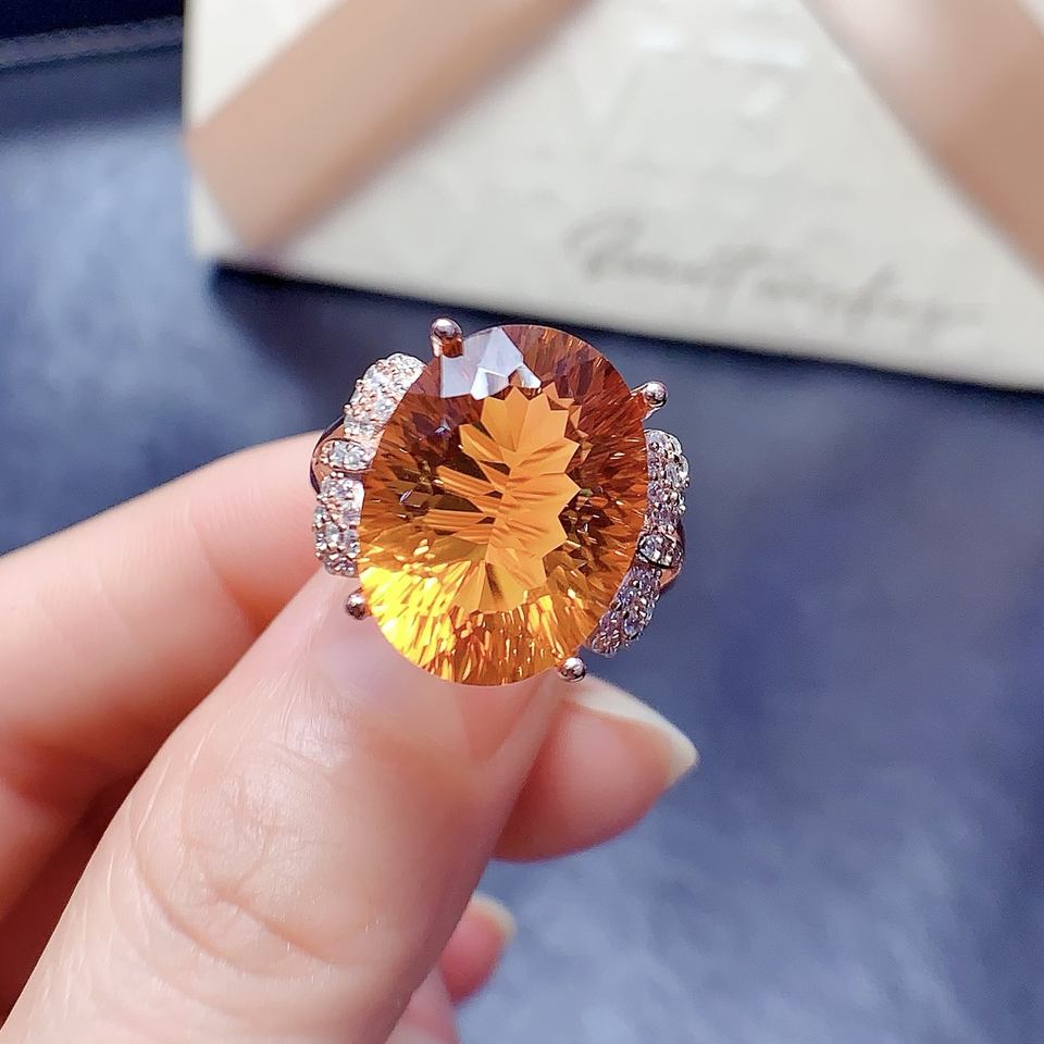 อินเอ เครื่องประดับระดับไฮเอนด์สำหรับผู้หญิง แหวนเงินแท้ 925 ประดับด้วยพลอยซิทรินธรรมชาติ เครื่องประดับแฟชั่น