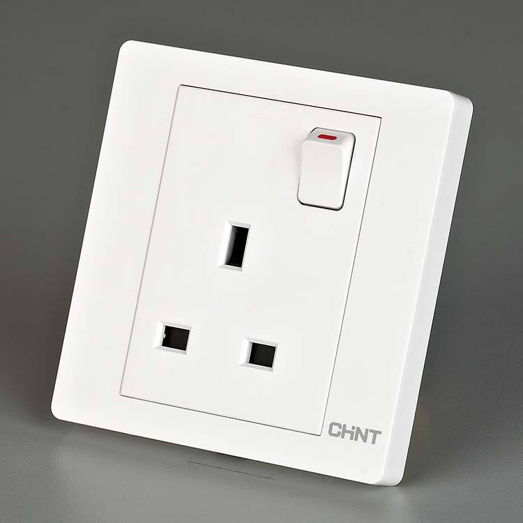 เต้ารับสวิตช์ไฟฟ้าแบบ3ขาของสหราชอาณาจักร Chint 1ตัว