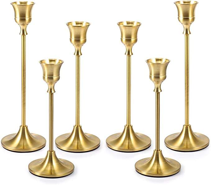 เชิงเทียนโลหะแบบคลาสสิกมีความต้องการสูงเชิงเทียนโลหะหกชิ้นแบบเรียบง่าย