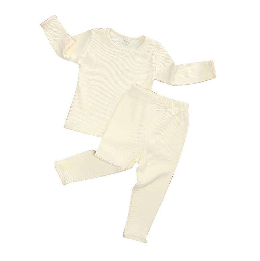 ชุดนอนเด็กทารกชายหญิง แขนยาว ผ้าคอตตอนริบ ท็อปและกางเกงขายาว ชุดลำลองสำหรับเด็กวัยหัดเดิน เสื้อผ้าเด็กแบบ unisex