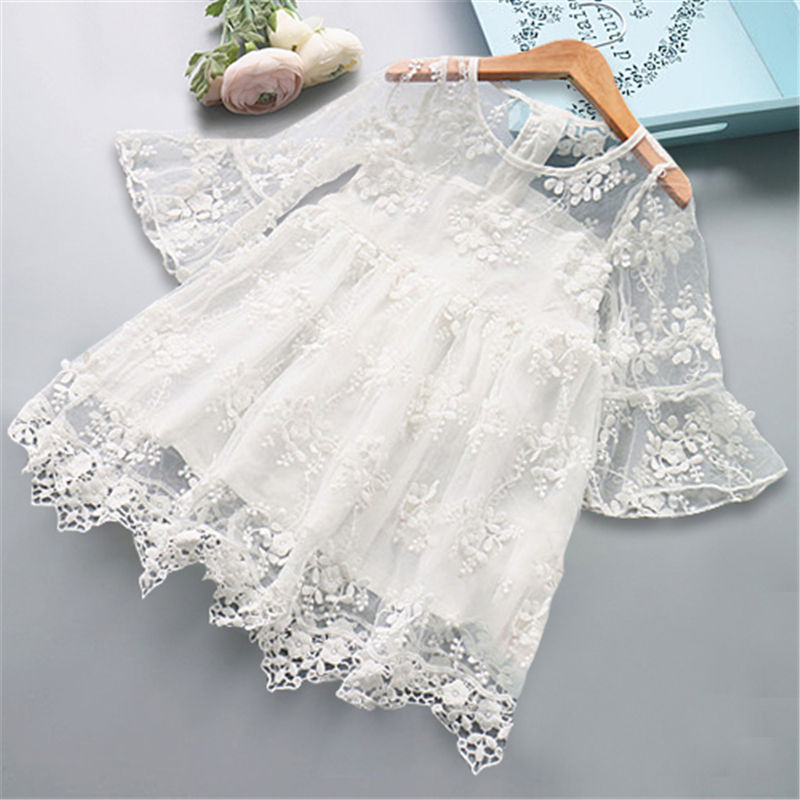 ชุดเดรสเด็กผู้หญิงคุณภาพสูง แต่งลูกไม้ฉลุลายสวยงาม สำหรับเด็กเล็กอายุ 2-7 ปี