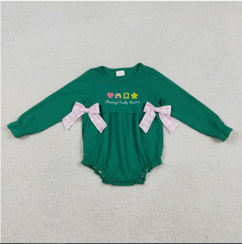 ชุดรอมเปอร์เด็กผู้หญิงสีเขียวปักลายเครื่องรางนำโชคของแม่ รุ่น LR2839 สำหรับวันเซนต์แพทริค