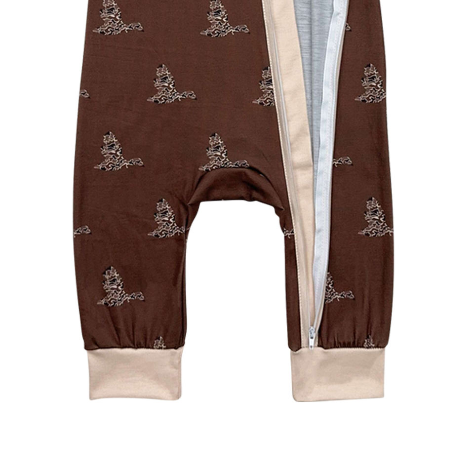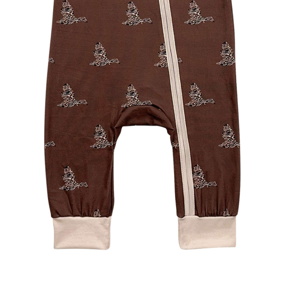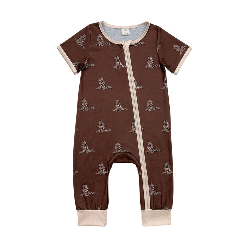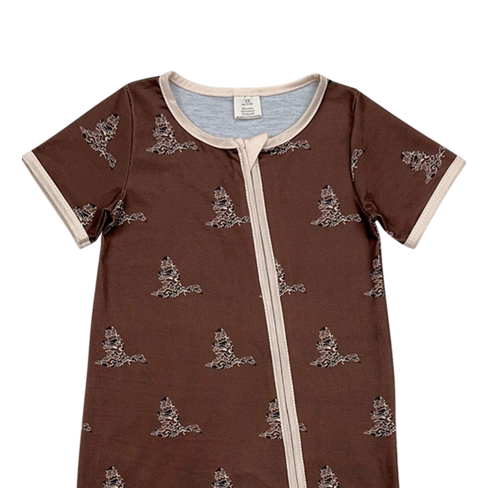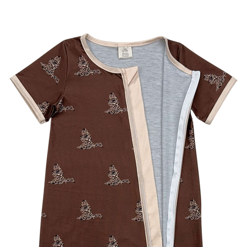 ชุดหมีแขนสั้นมีซิปสำหรับเด็กทารกหญิงชุดหมีพิมพ์ลายเป็ดพรางสีน้ำตาล