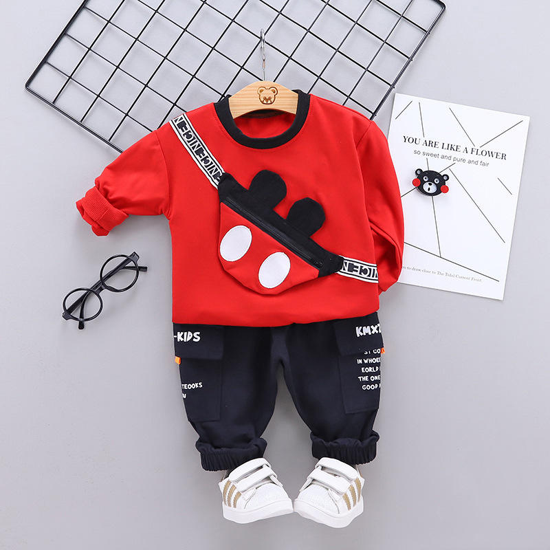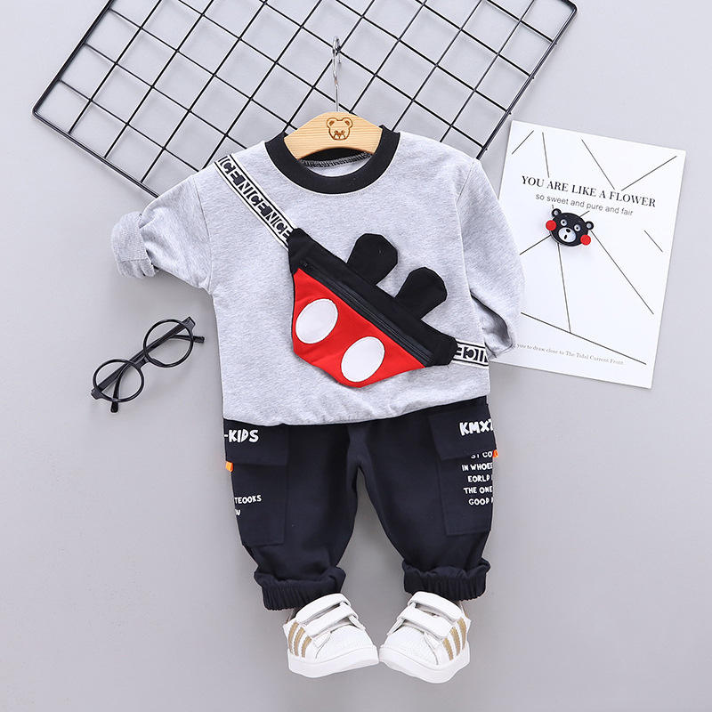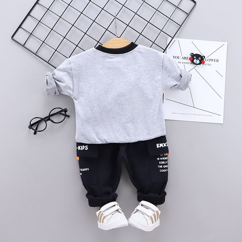 ชุดลำลองเด็กผู้ชายสไตล์ใหม่สำหรับฤดูใบไม้ร่วง ดีไซน์เสื้อผ้าสีสันผสมผสานจากจีน